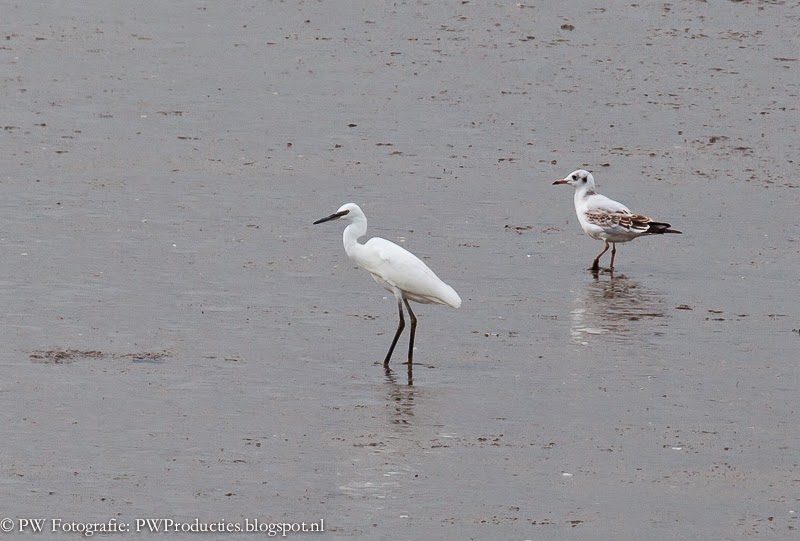 Tot slot nog even naar de dam van Stellendam. Het is daar druk met Lepelaars, Oeverlopers, Aalscholvers, Meeuwen, Tureluurs en Rosse Grutto's. Zoals het hoort in deze tijd op een zandplaat. Als dan ook nog een Kleine Zilverreiger door het beeld vliegt is de ochtend echt wel geslaagd.