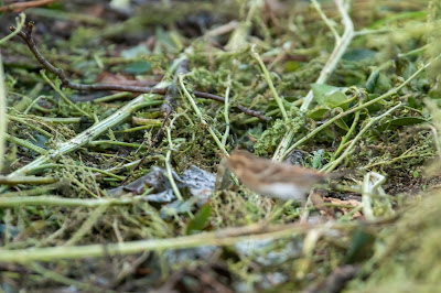 Ondanks het sombere weer toch best aardig! Ik ben tevreden en ga de groep ondersteunen bij het opzoeken van de Bosgors. Geen sinecure! Het beest zit waarschijnlijk ergens in een struik, of eronder op de grond. Niet te zien dus. Gelukkig verraadt de vogel soms zijn schuilplaats door een schel piepje en na ruim een uur vinden we de vogel die als een muis door het gewas kruipt. Ik zie het beestje een paadje oversteken en heb een split-second om een foto te maken....